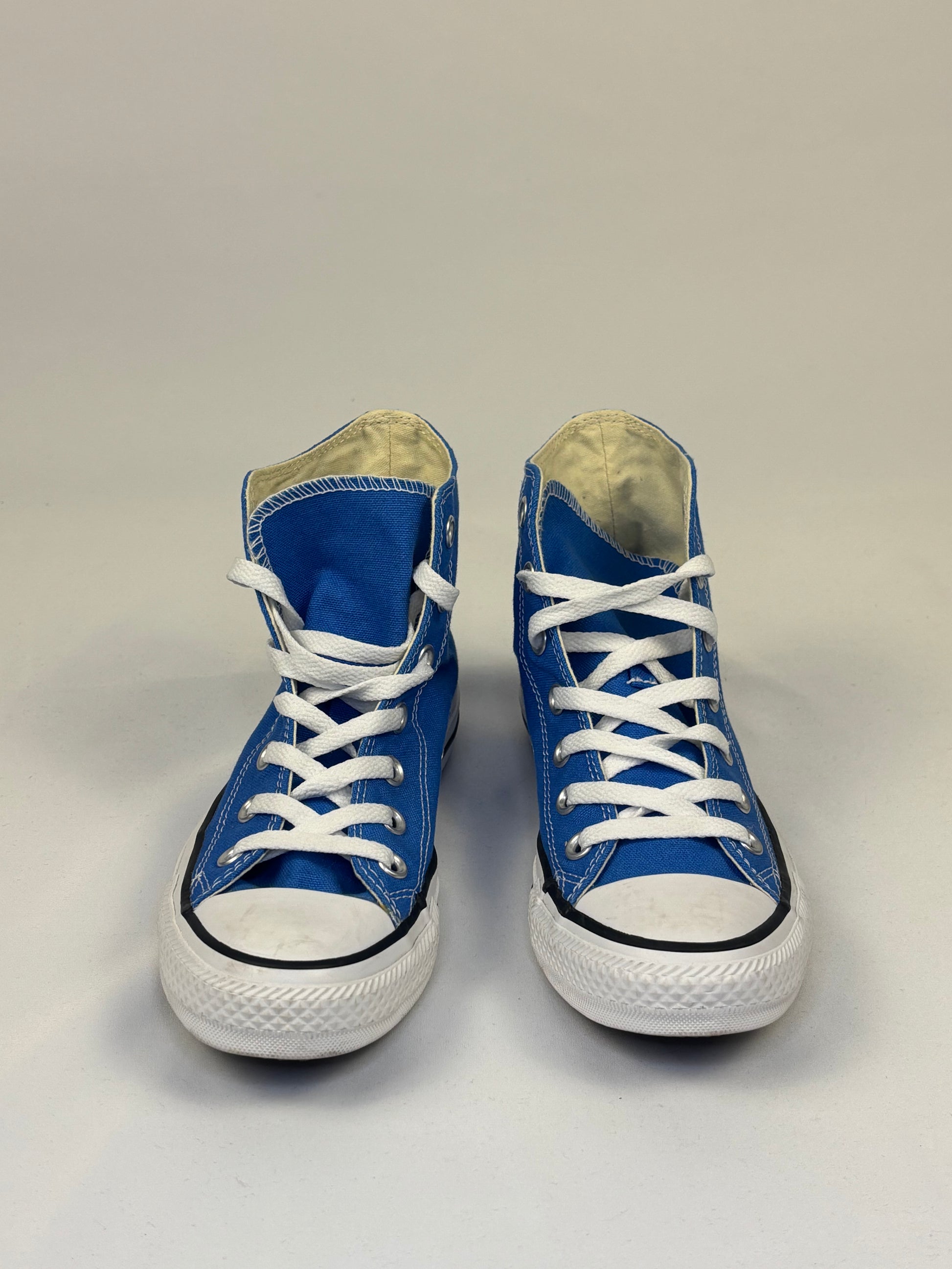 Diese klassischen Converse Chucks im High-Top-Design sind ein zeitloses Must-have für jeden Sneaker-Fan. Das leuchtende Blau, die weiße Zehenkappe und das unverkennbare All Star Patch an der Seite machen sie zu einem echten Hingucker. Ideal für lässige Streetstyles, Festivals oder den Alltag.