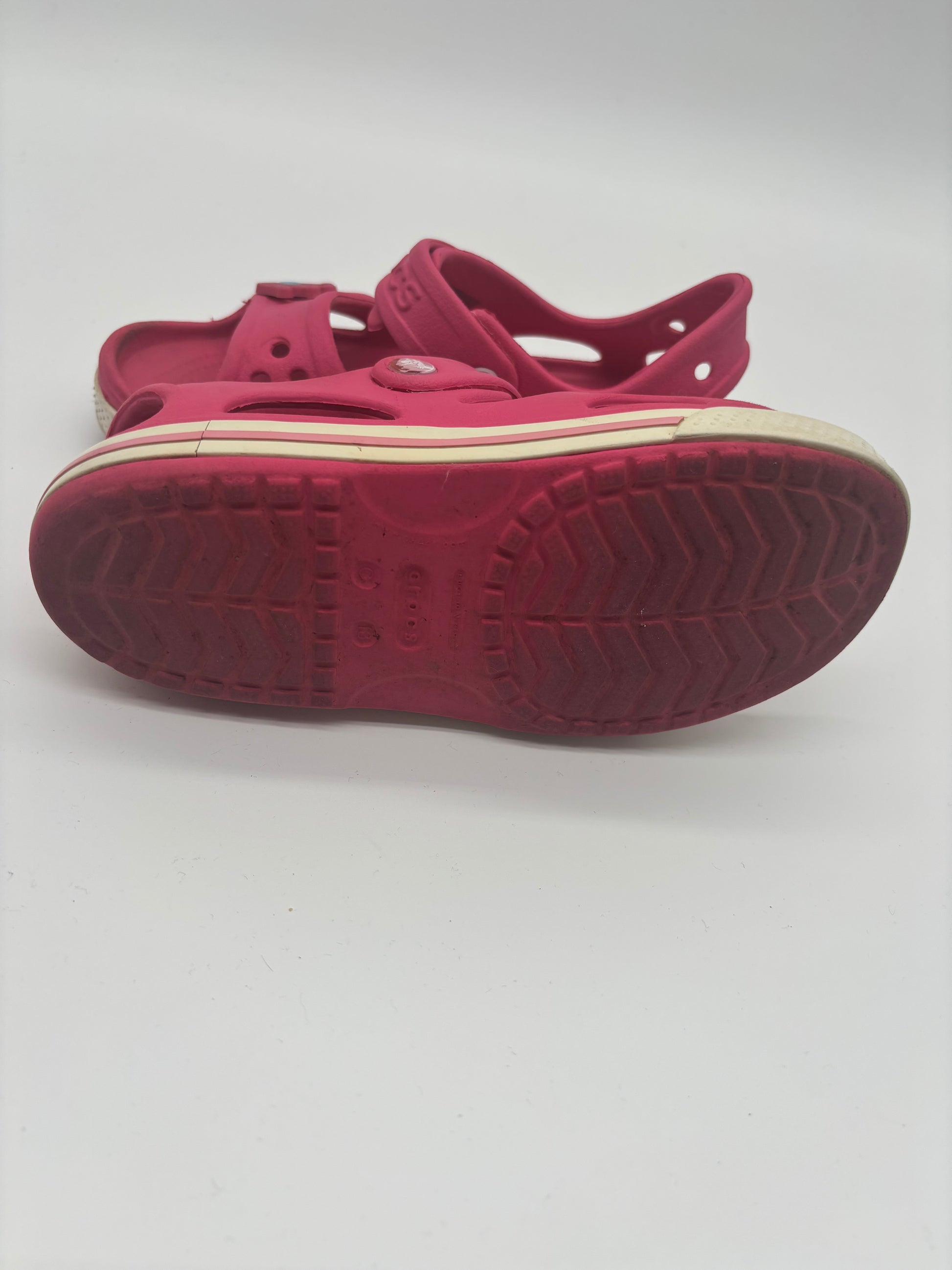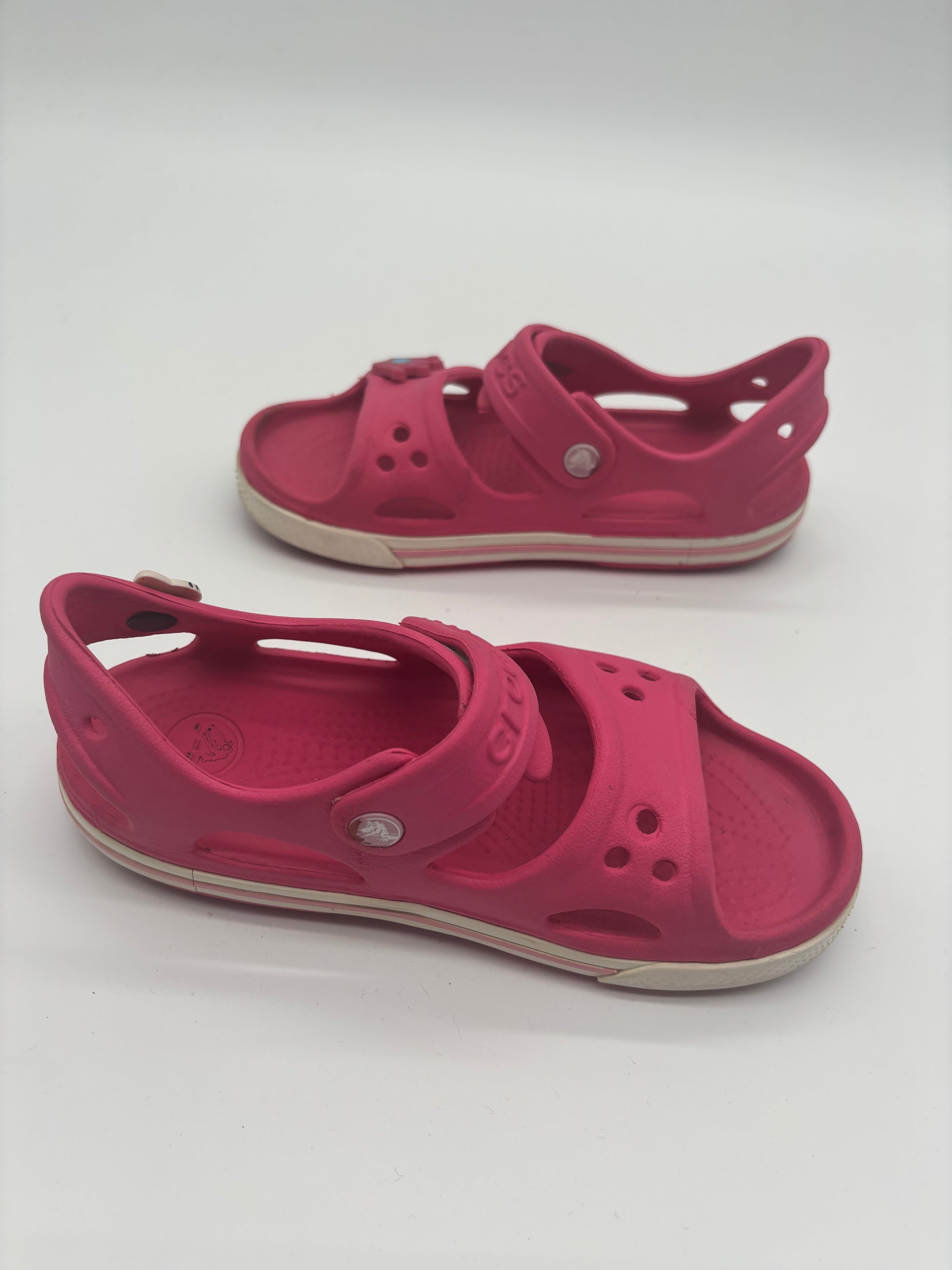 Crocs Kindersandalen in leuchtendem Pink sind perfekt für aktive Kinderfüße an warmen Tagen. Mit ihrem offenen Design, den verstellbaren Klettverschlüssen und dem rutschfesten Sohlenprofil bieten sie sicheren Halt und viel Bewegungsfreiheit, ideal für Spielplatz, Garten oder Strand.